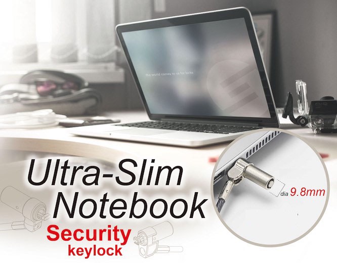 At only 9.8mm in diameter, the lock head is designed for even the thinnest laptops and devices while still meeting excellent standards for tamper-resistance, reliability and durability.